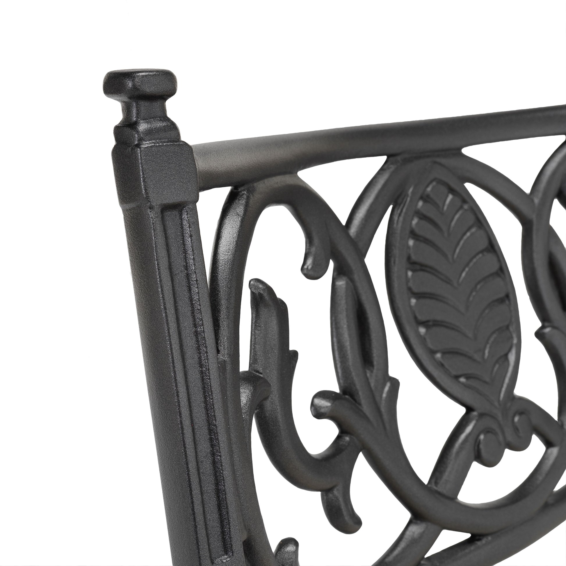 De snirkliga, svepande linjerna i karmstolens rygg återkommer i bordsskivans dekorativa mönster, medan bågformen i stolsbenen återspeglas i bordets ben. Resultatet är en harmonisk, tidlös design med både styrka och karaktär.