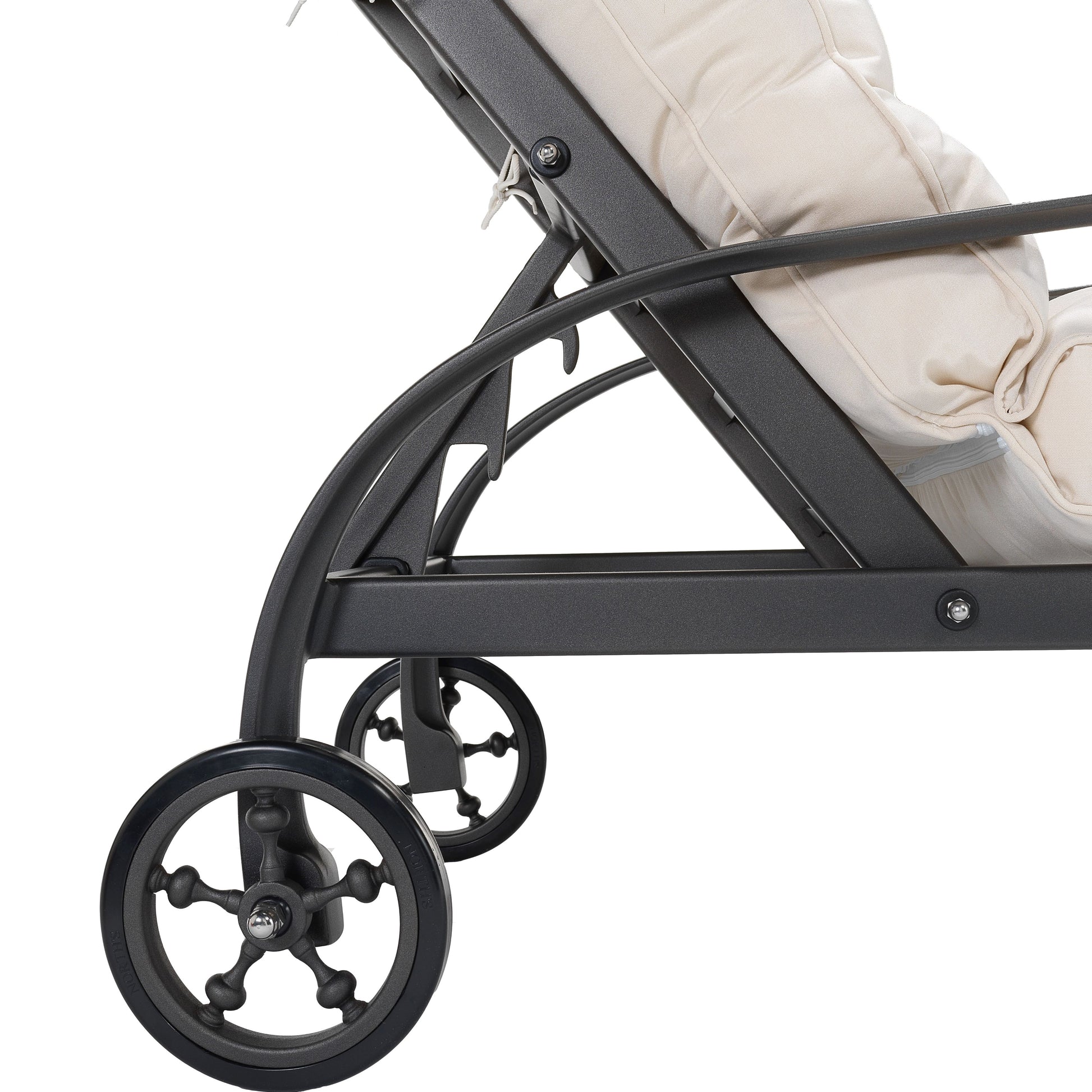 De är perfekta för fullständig avslappning – vare sig du vill följa aktiviteterna vid poolen, läsa en bok, dricka en cocktail eller allt på en gång. De stödjande armstöden gör läsningen extra behaglig. Solsängarna är dessutom lätta att flytta – lyft bara i framänden och rulla dem dit du vill – och ryggstödet kan justeras i flera lägen, inklusive helt plant.