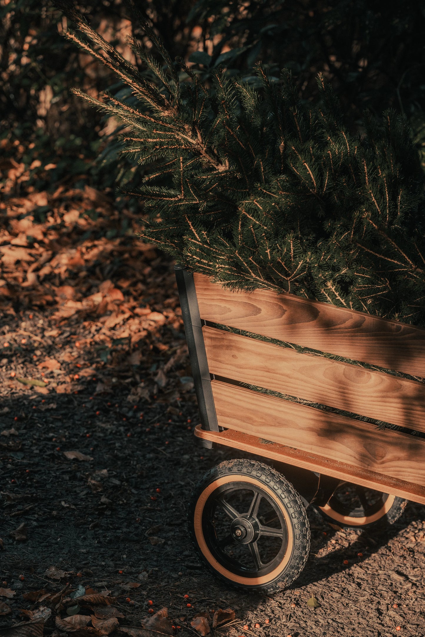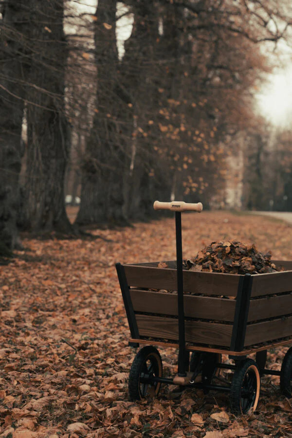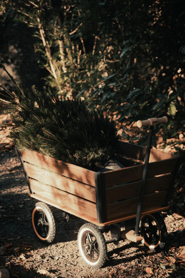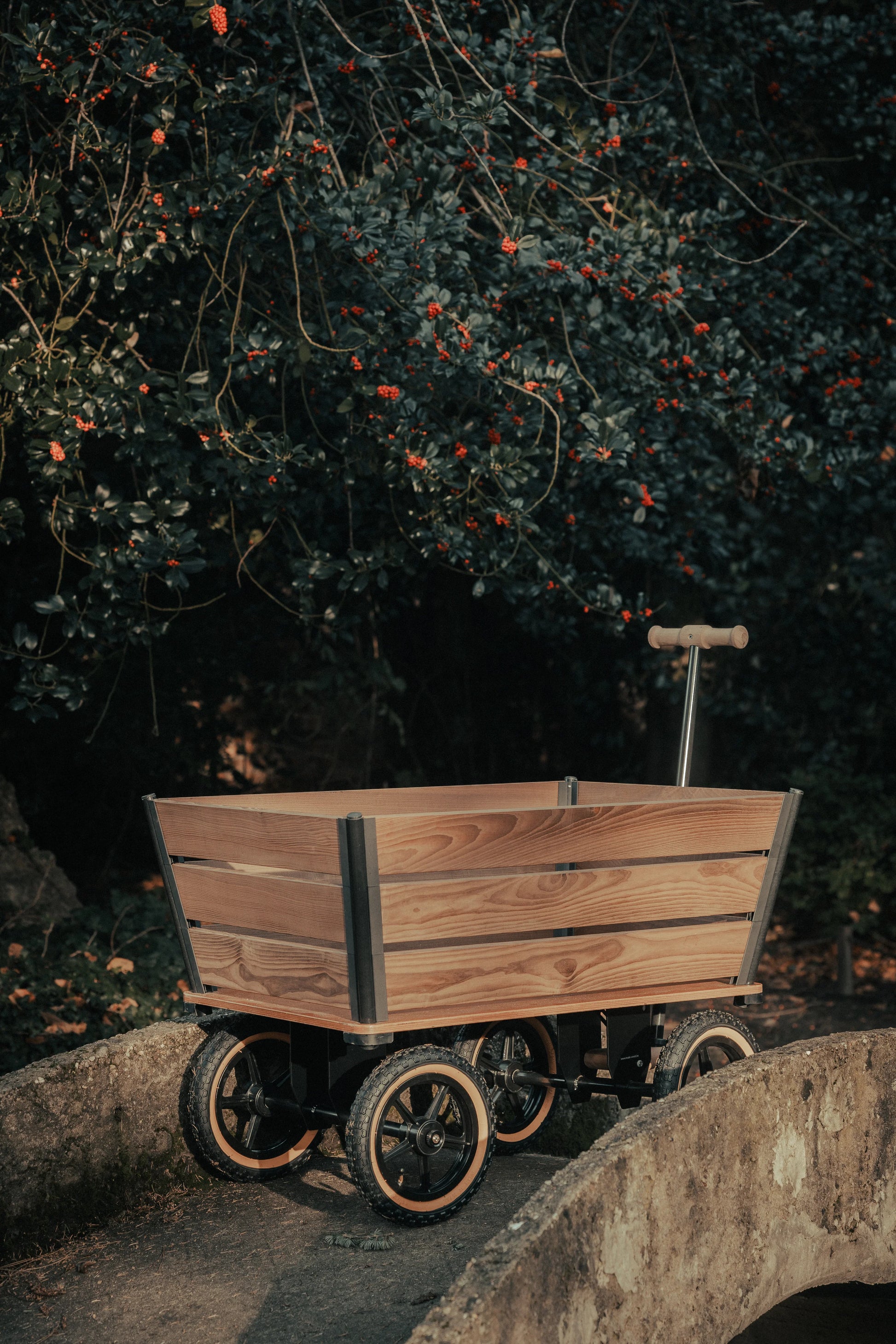 Le cadre est composé de quatre tiges profilées et de planches en thermowood, ce qui améliore à la fois l'esthétique et la convivialité. Malgré son faible poids de seulement 23 kg, le Wagon peut transporter une capacité allant jusqu'à 150 kg et, une fois démonté, il rentre dans le coffre d'une voiture.