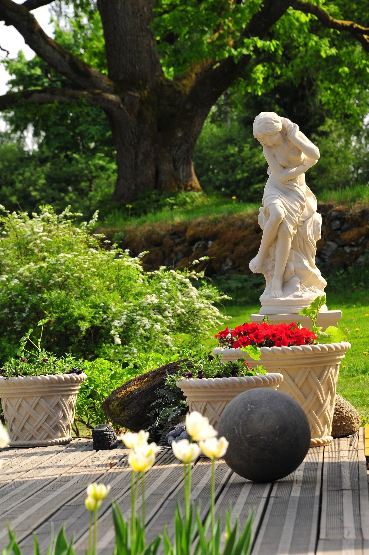 - Höj di staty på en Haddonstone-piedestal för större framträdande och synlighet. Vi rekommenderar Small Octagonal Piedestal och 20-tums Elizabethan Sockel.